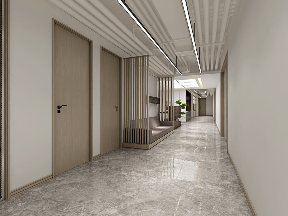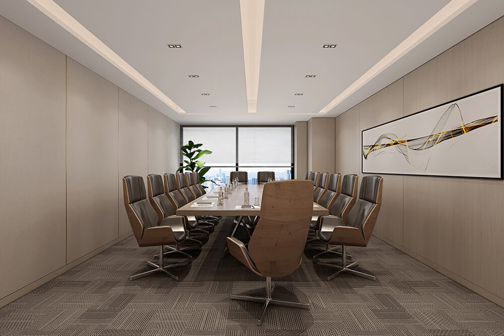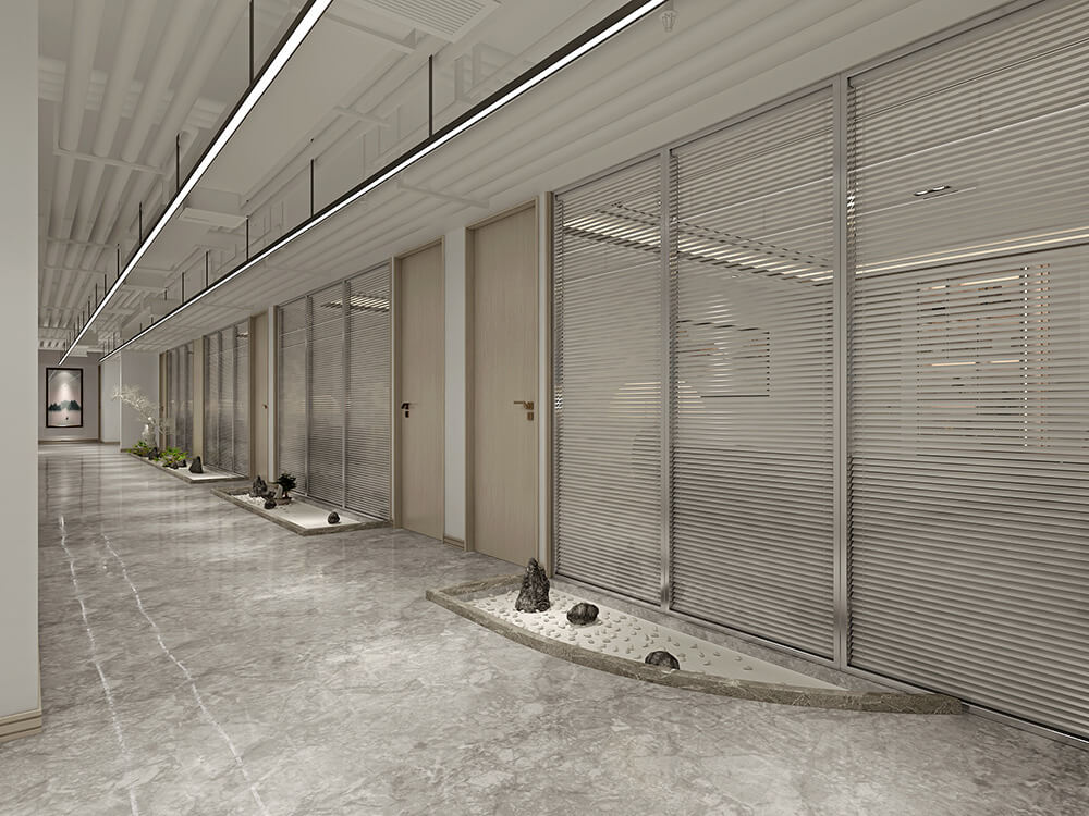本案定位為現代簡約風格,整體硬裝以黑白灰作為主色調,運用暖木色作為主軸,讓整體空間更有溫馨愜意的舒適感,顛覆人們對于工作場域冰冷生澀的刻板印象,簡潔而利落的設計讓空間更為寬廣通透,形塑現代風格之韻味。玻璃隔斷采用溫潤木質結合簡潔明亮的白色透明玻璃,即增添了室內通透性,也增添了空間的色彩溫度,特意以不規則間距的分隔,展現錯落有致之美,使得空間有著豐富多元的肌理樣貌,不因同一材質而枯燥無味。開敞的工作空間,激發員工的互動性和創造力,增加員工的企業自豪感和歸屬感。