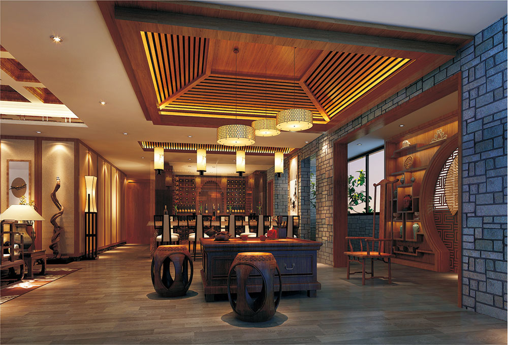 設(shè)計(jì)說明:整體設(shè)計(jì)運(yùn)用歐式美學(xué)思想結(jié)合中式元素,旨在體現(xiàn)中國(guó)傳統(tǒng)文化的深厚蘊(yùn)涵。門廳的設(shè)計(jì)不僅起到活躍空間氣氛的效果,更起到連接空間關(guān)系的橋梁作用,開放的茶室及品酒區(qū)以古樸的木質(zhì)、灰磚打造出一個(gè)富有文化底蘊(yùn)的會(huì)所空間。